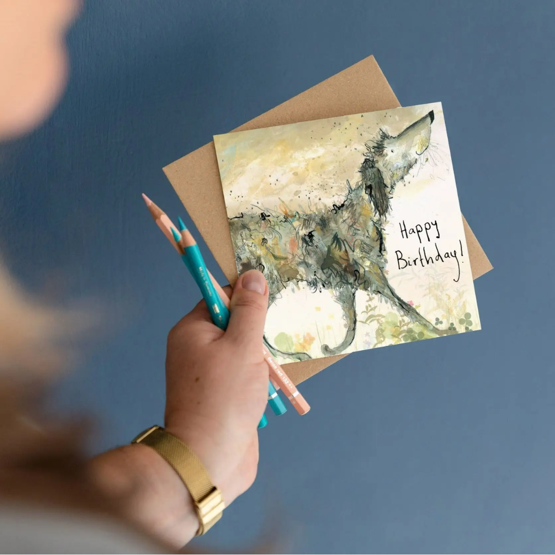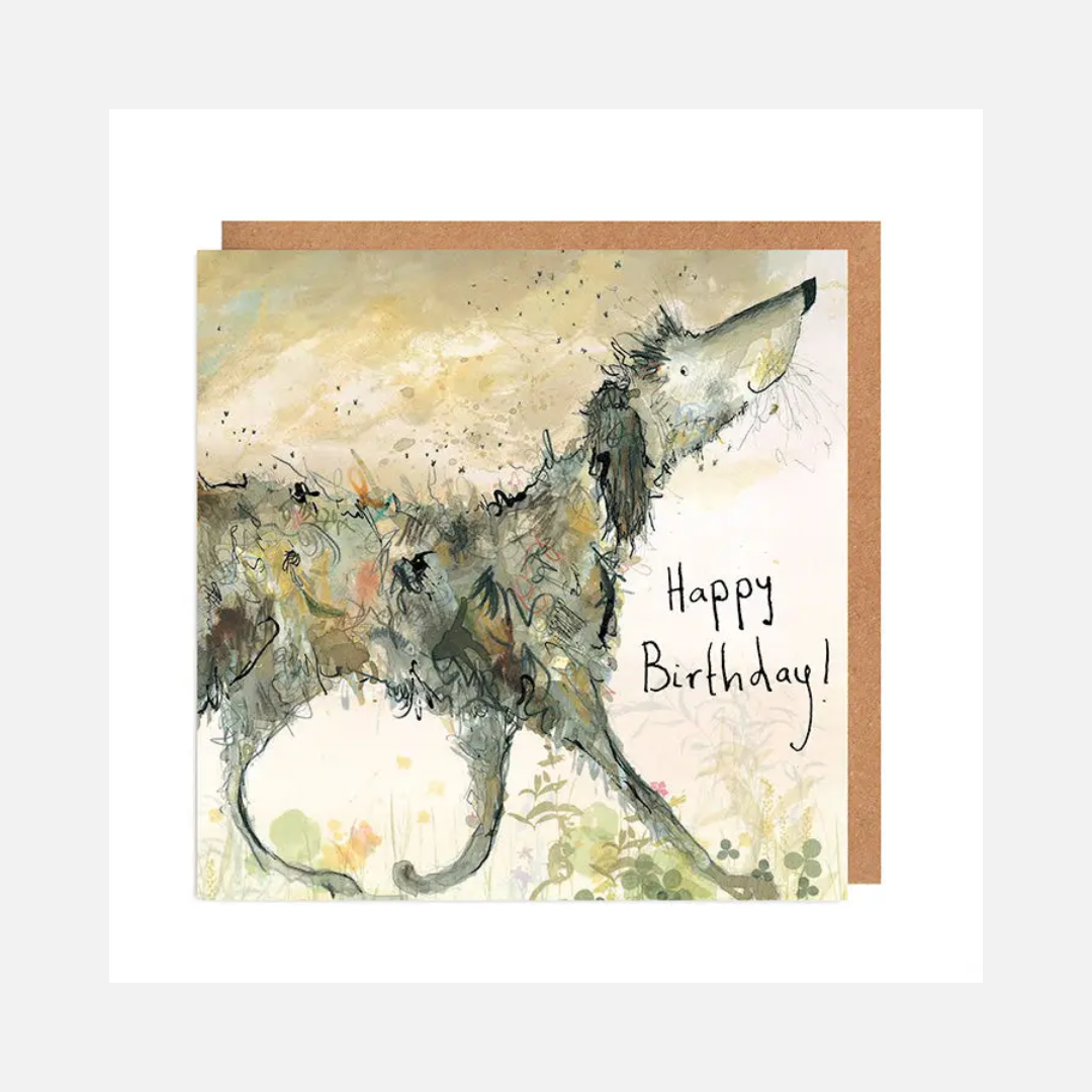 This beautifully illustrated birthday card from Catherine Rayner features Louie - a happy, cheeky dog who can be a bit stinky! He started life in Catherine's book 'Smelly Louie' where you can read about all of his adventures - and find out if he will ever get clean! Great for dog lovers of all ages....or anyone with a pongy pooch!