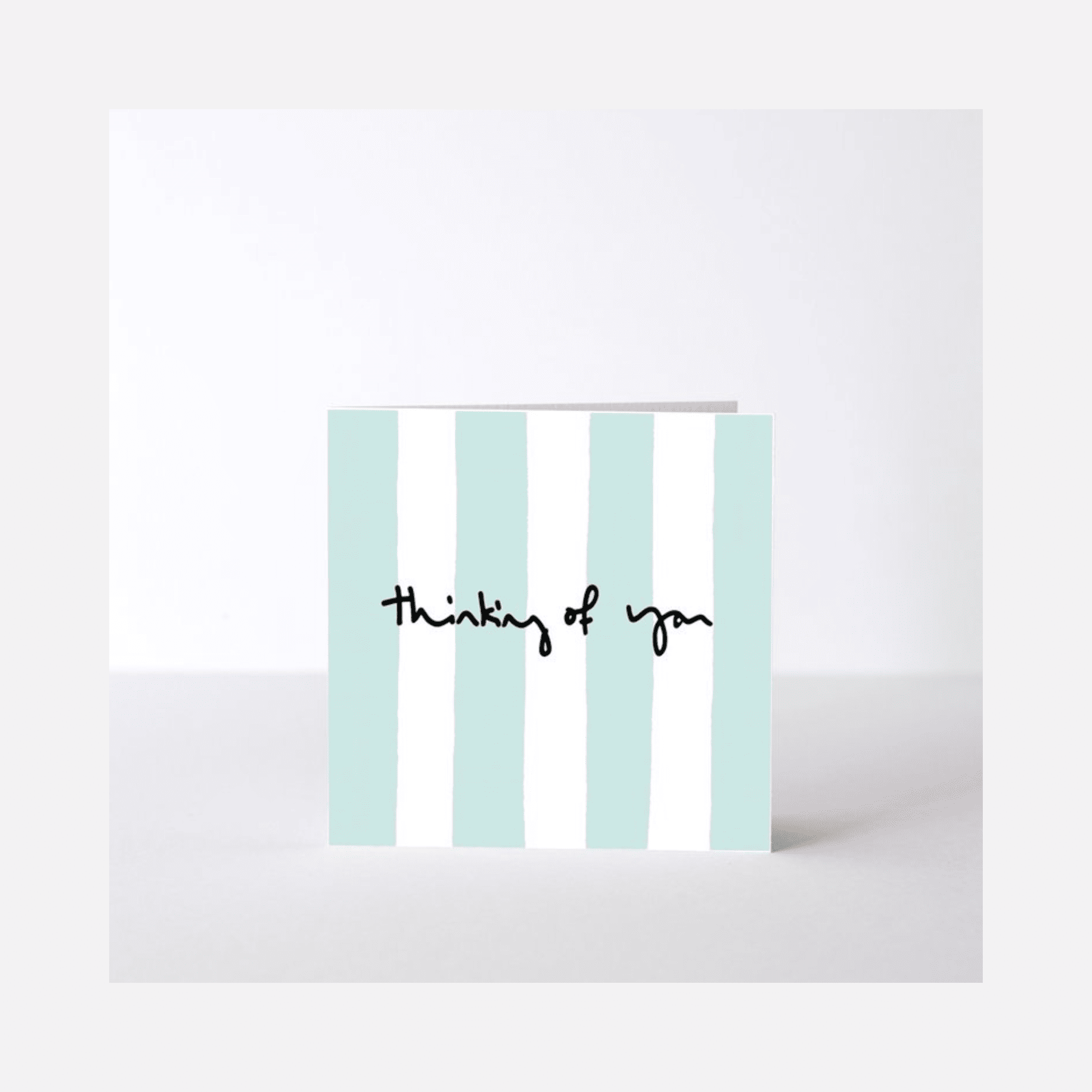 A gentle reminder that someone cares, this calming Thinking of you card from Heather Evelyn features soothing aqua stripes and elegant black lettering, perfect for sending a little love.
