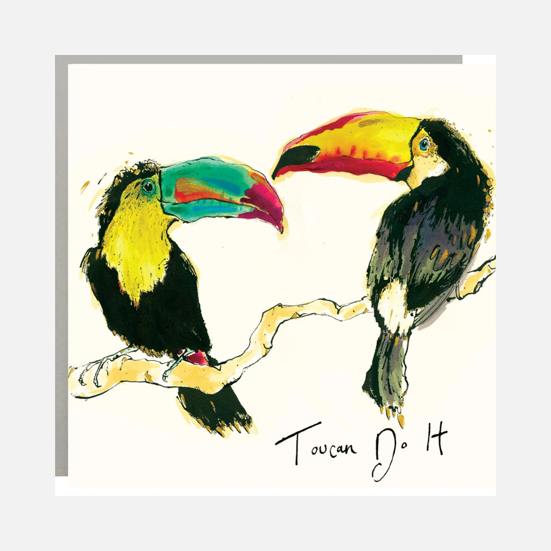Bring a smile to someone’s face with this vibrant greetings card by Anna Wright, featuring two colourful Toucans and the playful handwritten message: ‘Toucan do it’. The perfect pick-me-up for a friend who needs a boost or a little encouragement.