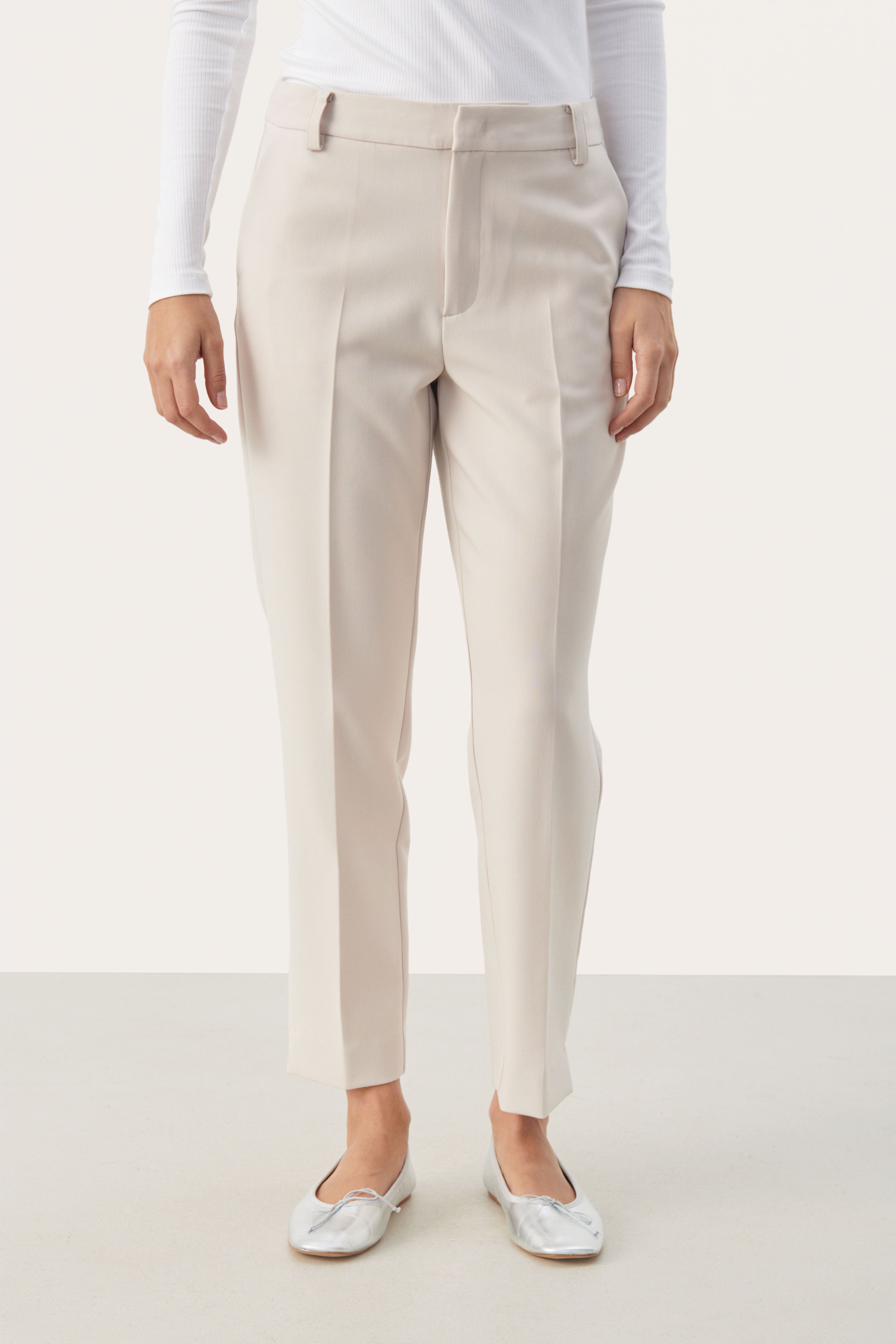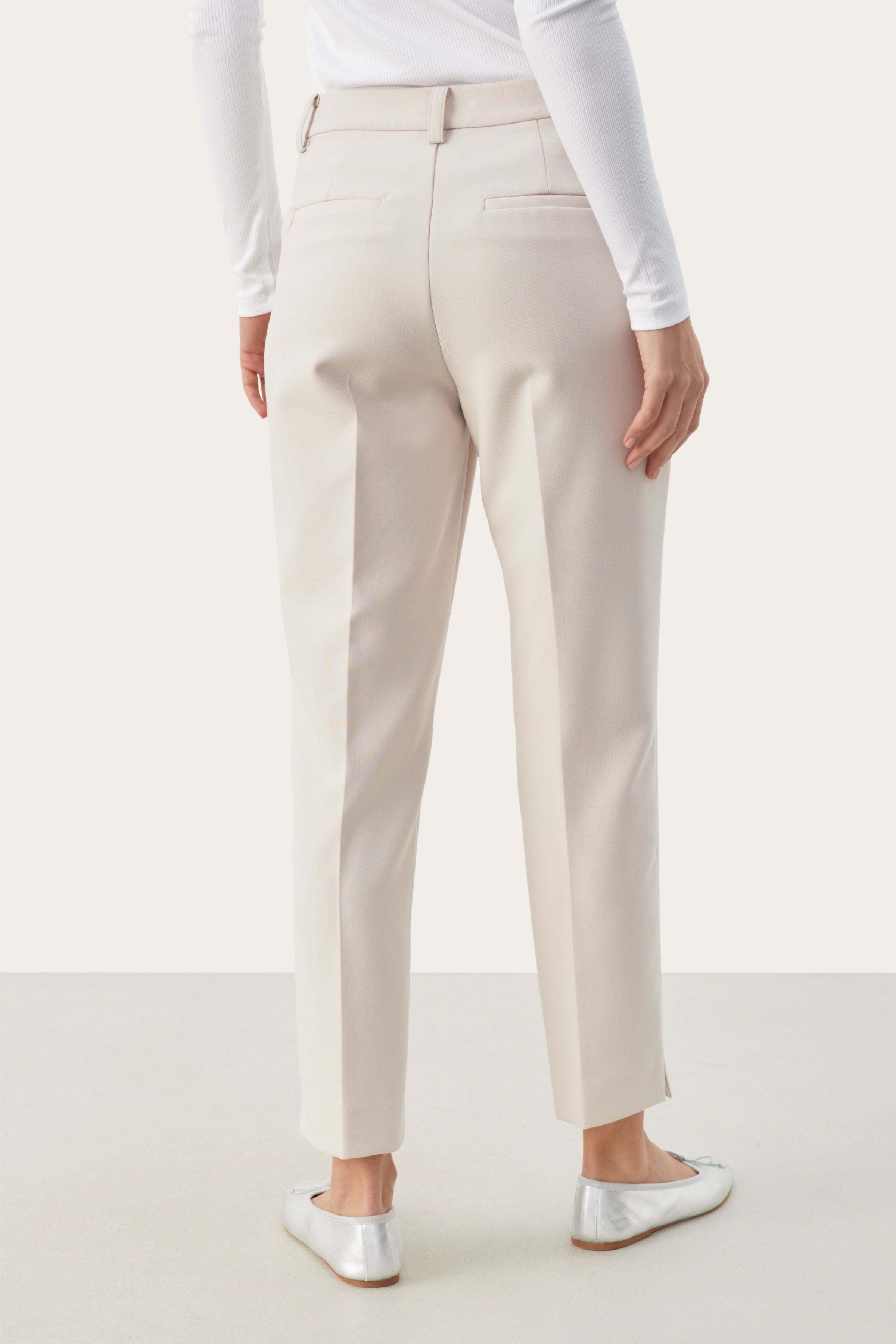 The Urbana Straight High Waist 7/8 Trousers in French Oak from Part Two offer the perfect balance of professional sophistication and casual elegance. Made from supple fabric, these ecru trousers feature a timeless silhouette with pressed pleats and side hem slits, adding a modern touch to a classic design.