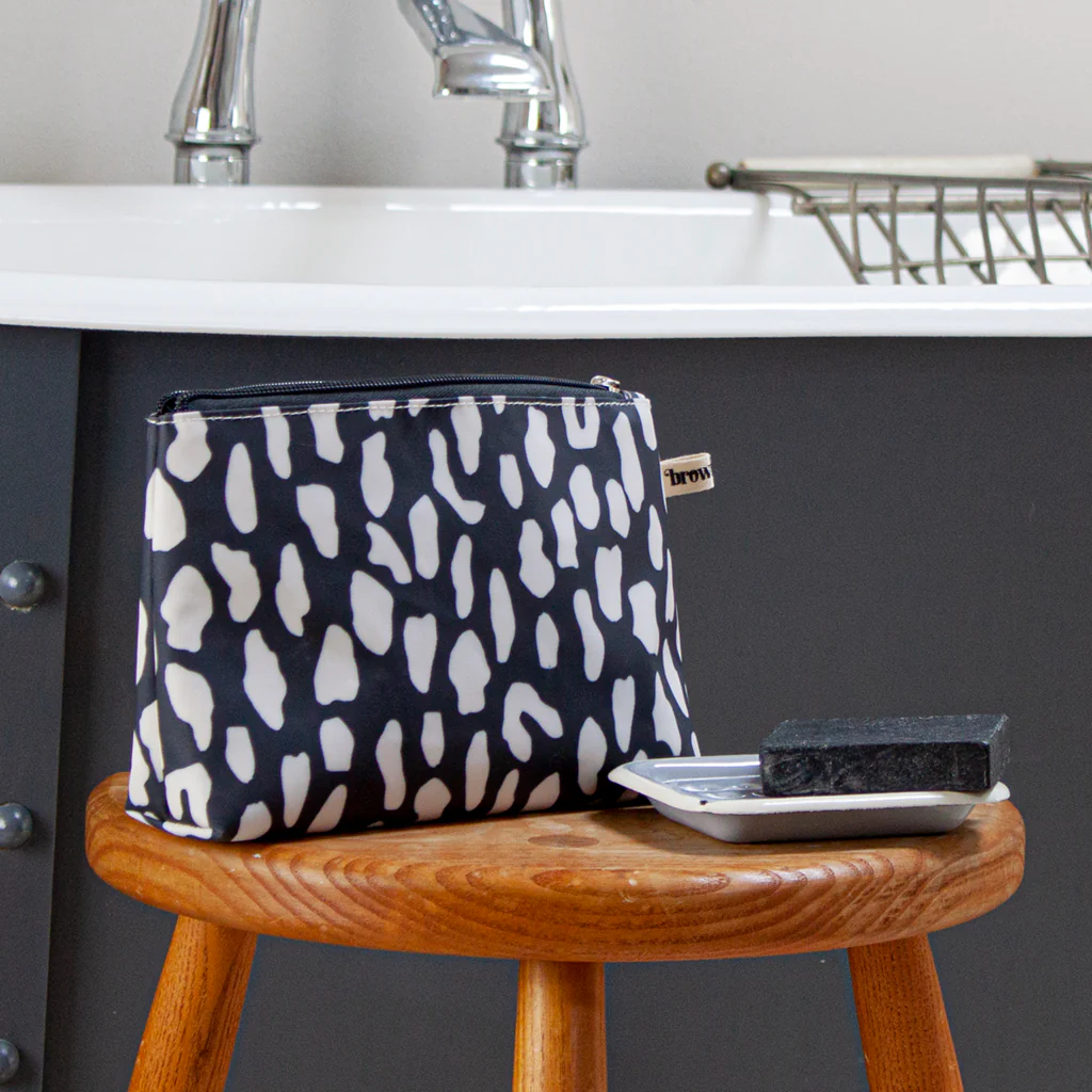 Get creative and organised with the wide make up bag from Brownstone London, featuring a unique black/off-white hand-drawn rock pool print inspired by the beauty of beach walks among the pebbles. Perfectly designed to hold a variety of items, including pencils and brushes.