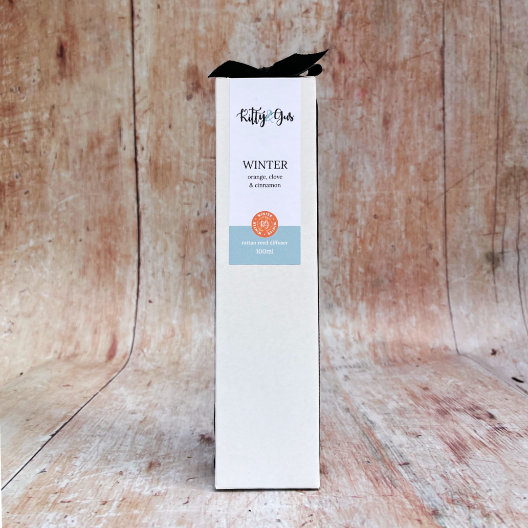 Transform your home into a winter wonderland with our 100ml diffuser, Kitty & Gus. Let the traditional Christmas scents of orange, clove, and cinnamon essential oils envelop your senses and create the perfect holiday atmosphere.