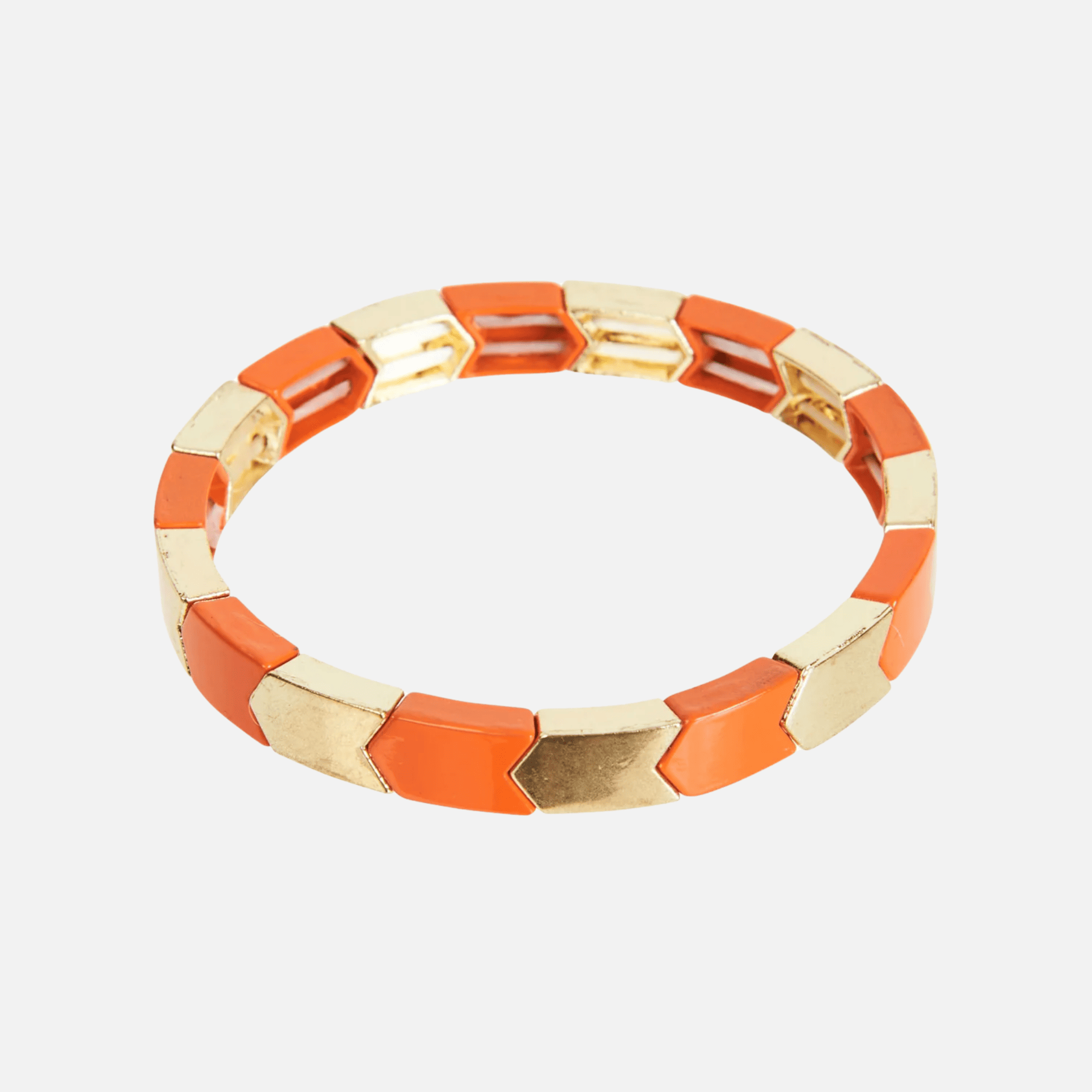 Make a splash this season with the Zephyr Cuff in Papaya by Eb & Ive. Featuring a vibrant chevron pattern with shiny gold beads mixed with Papaya Orange, this cuff adds a playful and bold touch to any look. Whether you stack it with other pieces or wear it alone, its lively design will instantly elevate your outfit. Perfect for pairing with sleeveless or short-sleeved styles for a warm-weather pop!